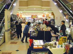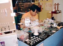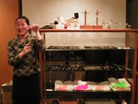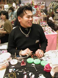一点モノの携帯ストラップは、天然石やビーズを使い、お客様のご希望を聞きながらその場で作っているのですが、これが大好評! またお客様の飼っているご自慢のネコちゃんの楽しいお話などで、会場は明るい雰囲気に包まれていました。 |