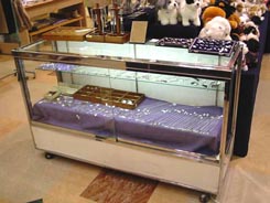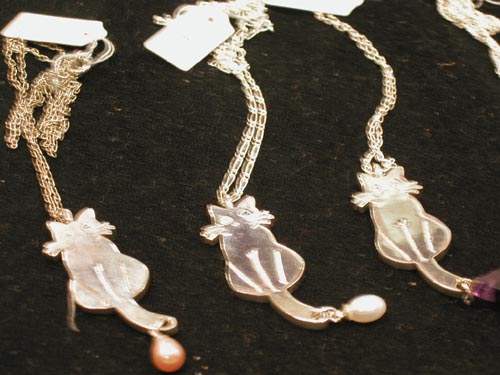 | 2002年12月12日(木)〜12月23日(月)に東京・谷中のギャラリー猫町にて、「猫の小さな贈りもの展」が開催され、アクセサリー、マグカップ、絵本など、すべて猫をデザインした洒落た小物や雑貨たちが勢ぞろいしました。このイベントで、大切な人へのクリスマスプレゼントが見つかった!という人も多いのではないでしょうか。小杉紳の実演販売もありで、クリスマス気分を盛り上げるステキなイベントになりました。 |
